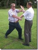 I thought long and hard how best to show the dummy form whether to use a dummy, stand alone pictures, one of the modern dummies with movable arms. After much thought I decided to show the form done against a person, I thought this would achieve several things. First it is clear what is going on so there is no confusion as what the moves is, secondly it means there should be minimal need to explain what is going on. Thirdly most students at home wont have a dummy so they will need to use some other method of practice.